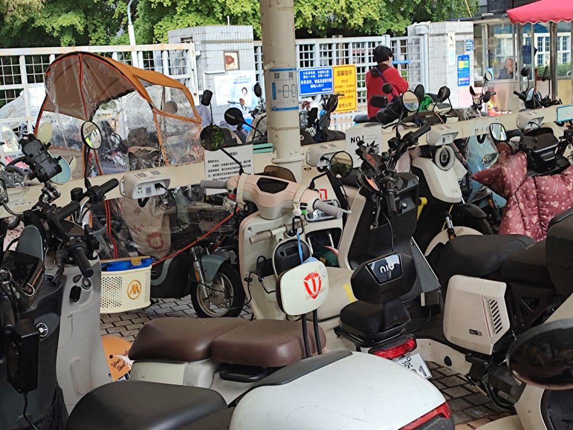 在车站西街15号院,记者也在车棚里看到一排按功率计费的充电桩。收费标准显示,0W至229W(含),1元可充240分钟;229W至310W(含),1元可充180分钟;310W至450W(含),1元可充150分钟;450W至600W(含),1元可充120分钟。