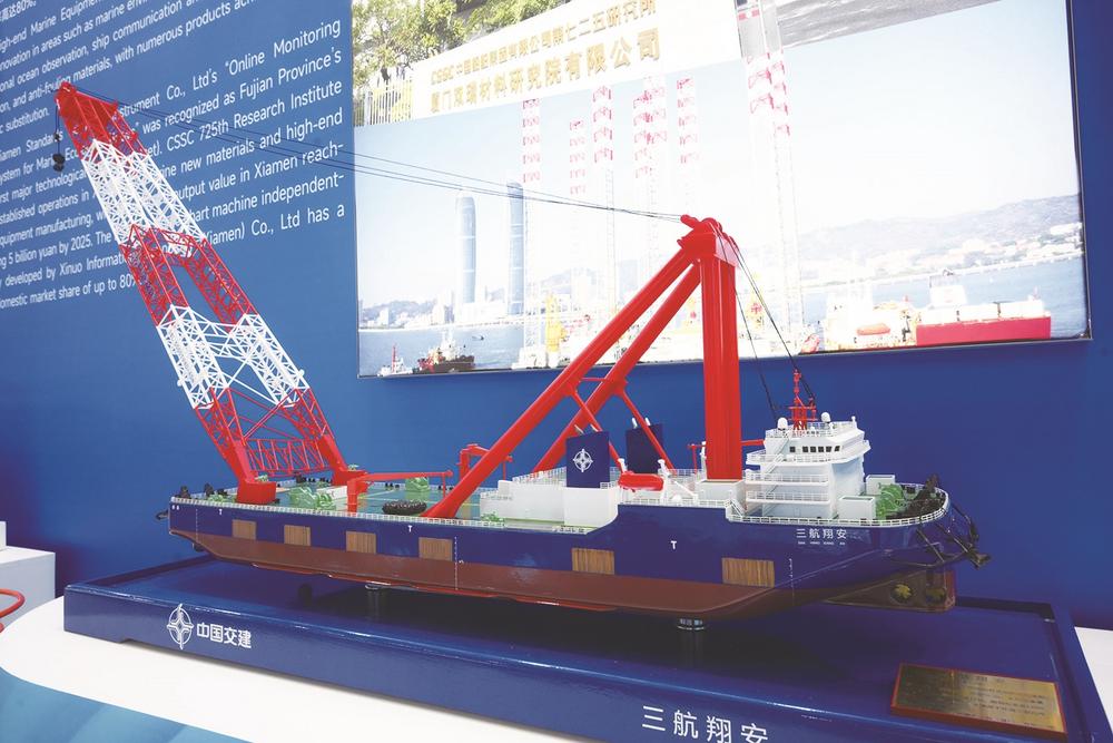 四号馆福建馆(福建海洋装备产业链馆)作为本土产业的“门面担当”,设置海洋装备、电动船舶、海上风电、深海养殖四大展区,展现福建海洋装备实力。电动船舶展区内,模型众多,令人眼前一亮。东方船研展出国内首艘入级CCS纯电海上客船“屿见77”号、省内最大纯电动游船“闽江会客厅”号、上海首条纯电动游览船“上海久事”号及杭州亚运会明星游船“江翠”号四艘标杆船模,船身细节精致入微,从舷窗到甲板栏杆都一一还原,仿佛随时能在虚拟的水面上航行。