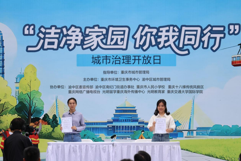 现场,渝中区城市管理局市容环卫管理科相关负责人也从专业视角解读了城市治理中的“共建共治共享”,现场观众也“沉浸式”感受了重庆城市治理的创新做法。