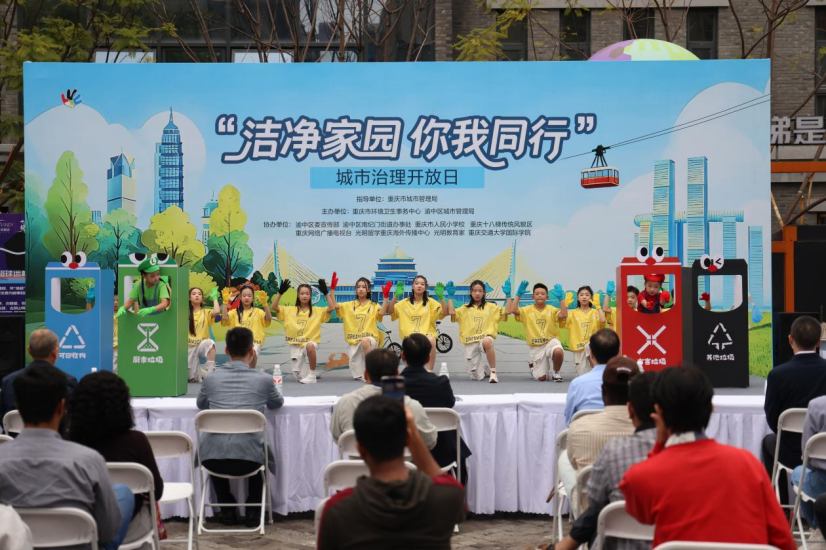活动伊始,重庆市人民小学的同学们身着环保主题服饰,踩着动感节拍带来《垃圾辨辨乐・街舞秀》,在欢快氛围中传递垃圾分类的趣味与意义,拉开活动帷幕。