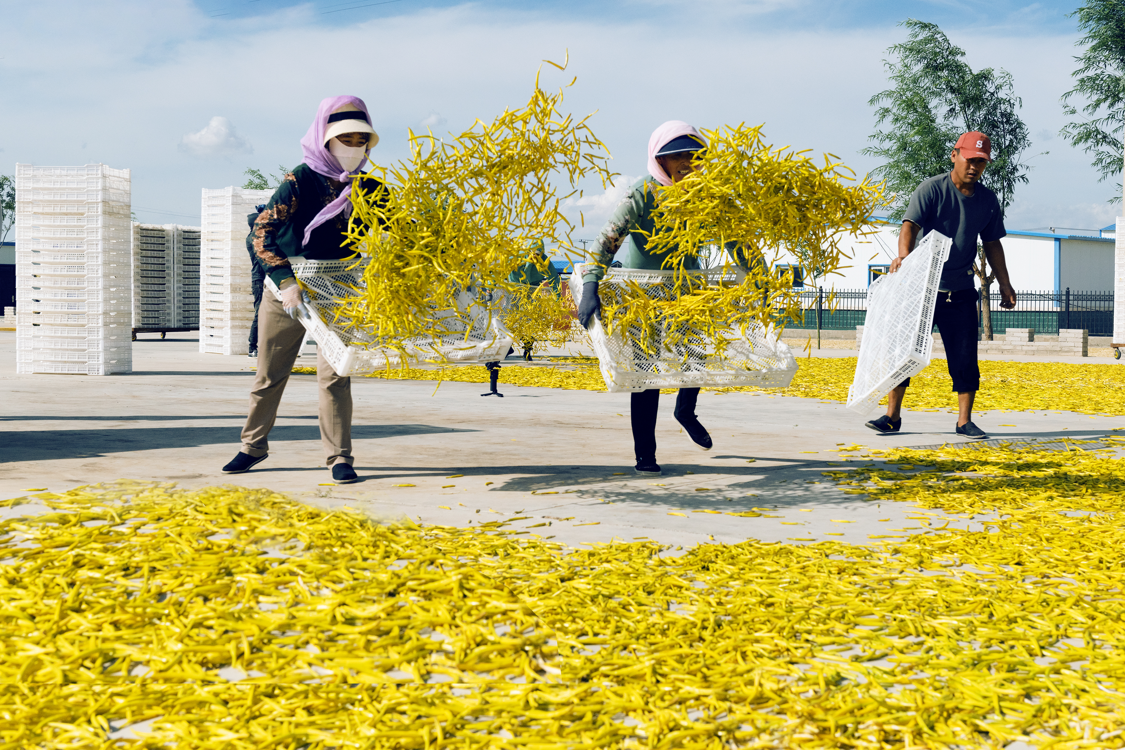 吴忠市红寺堡区周新村村民在晾晒黄花菜。谭佳亮摄