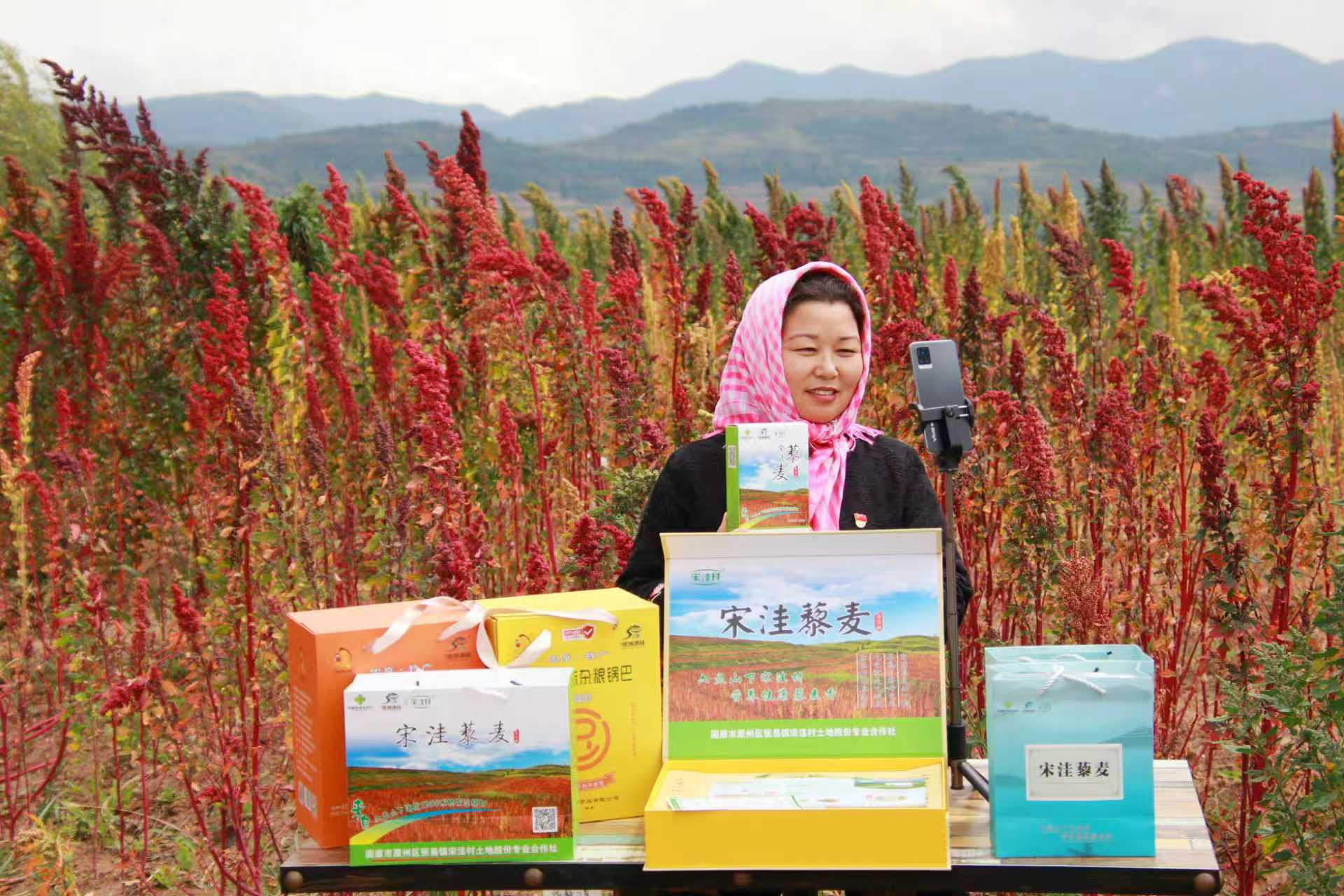 固原市原州区张易宋洼村藜麦基地助农直播。蔡全录摄