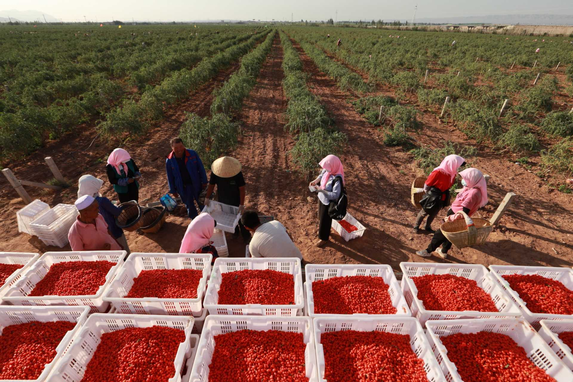 吴忠市同心县河西镇菊花台村枸杞丰收。 海洋摄
