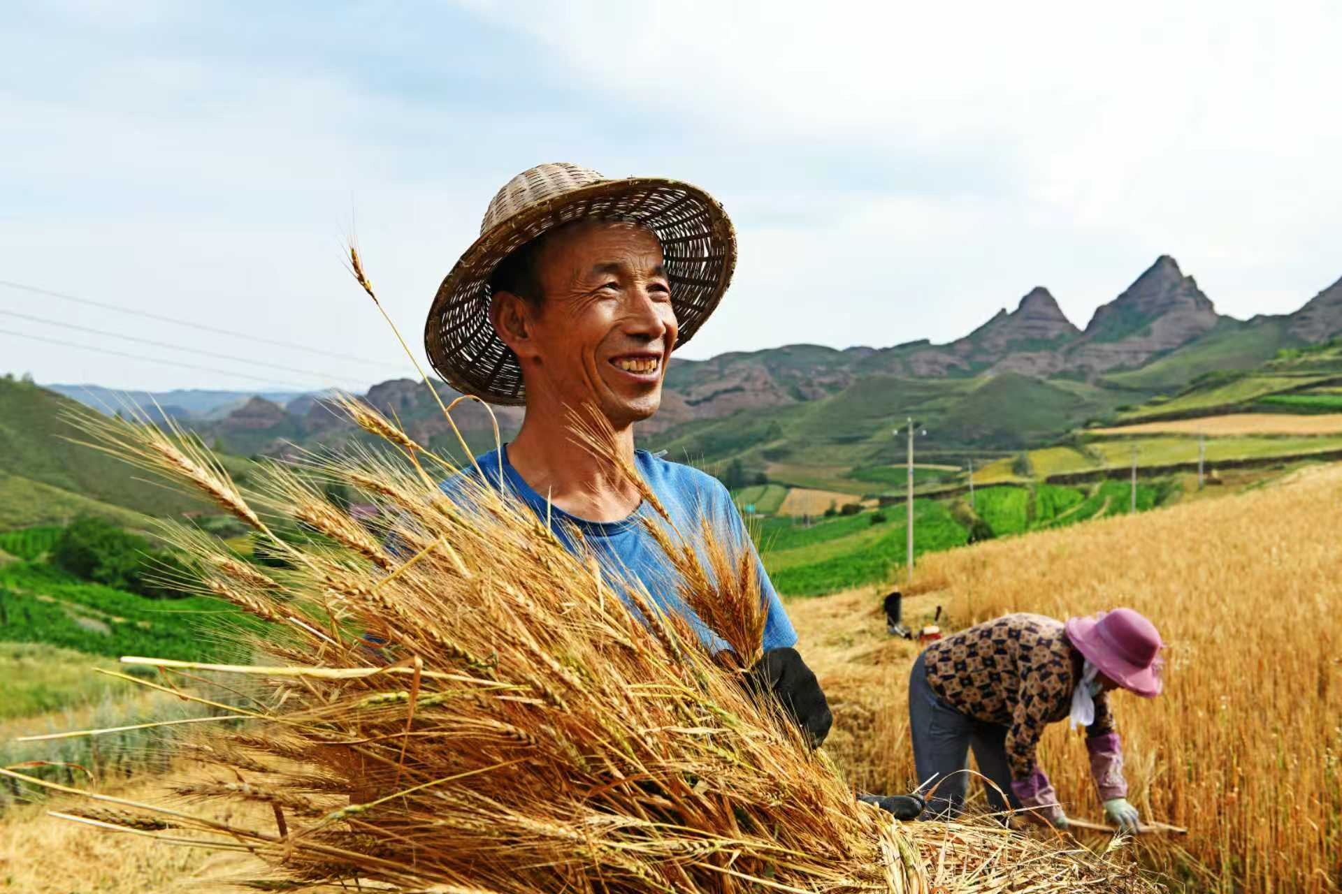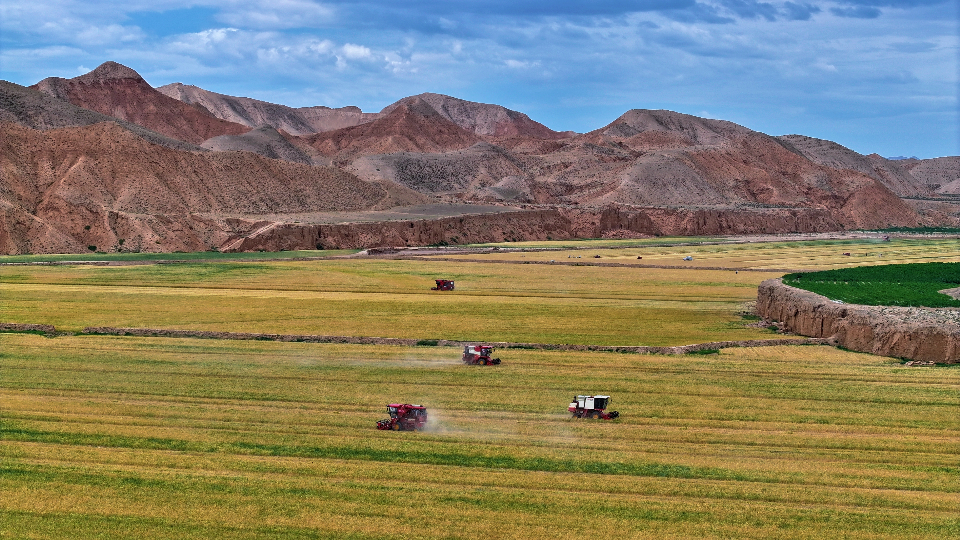 中卫市海原县“铁臂”收麦忙。李小明摄