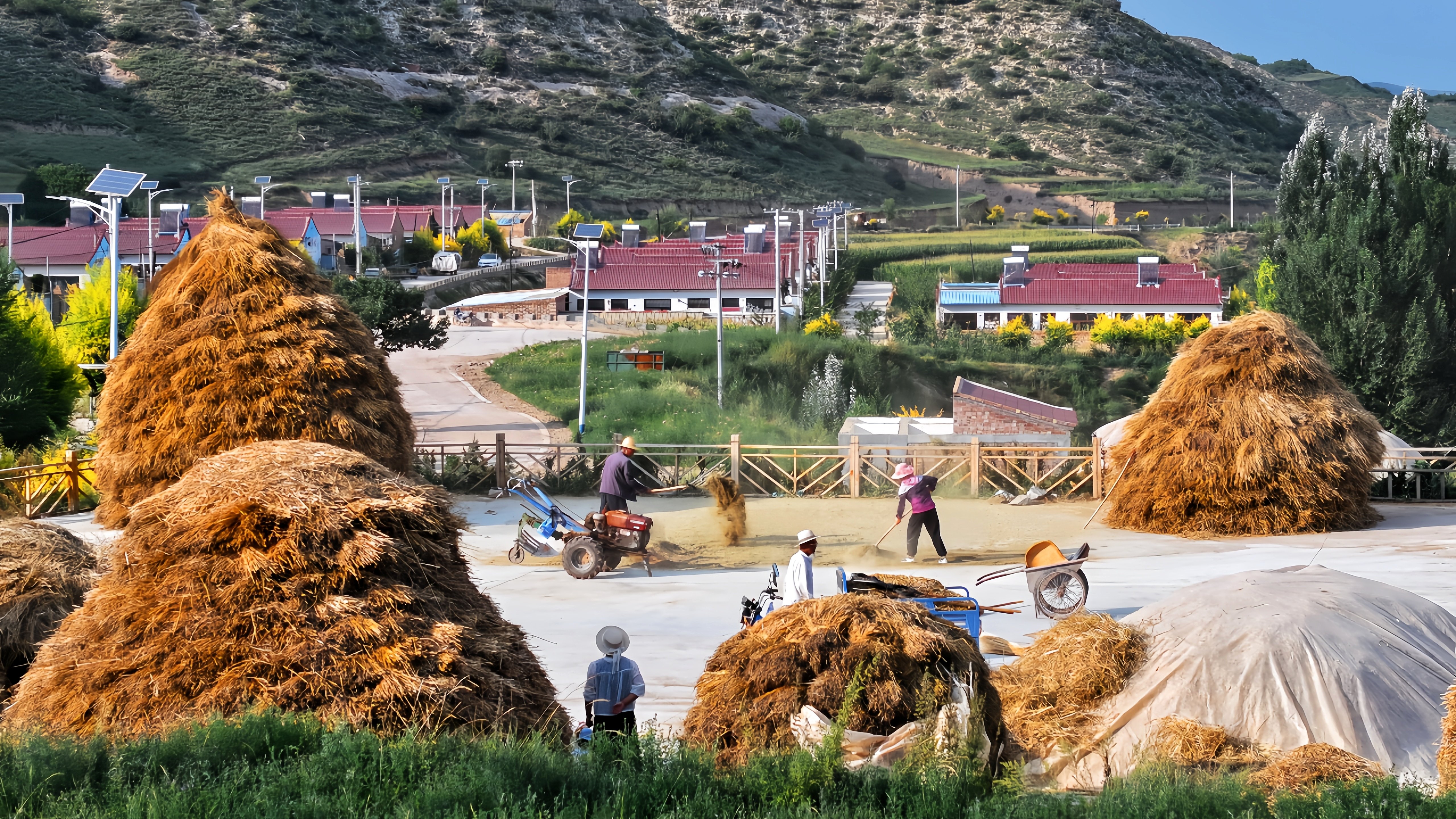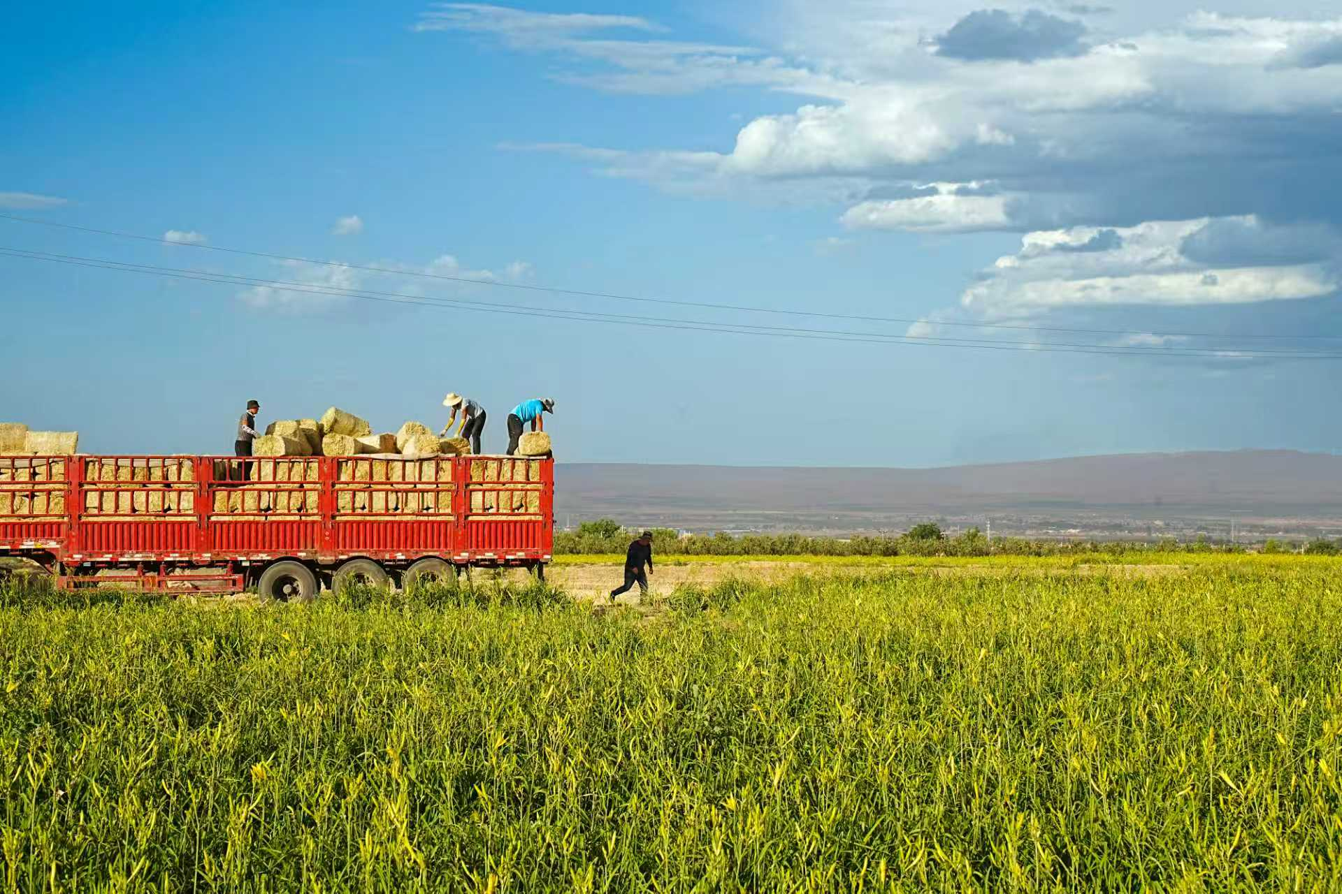 吴忠市同心县兴隆乡王团村装麦草饲料。宋铁军摄