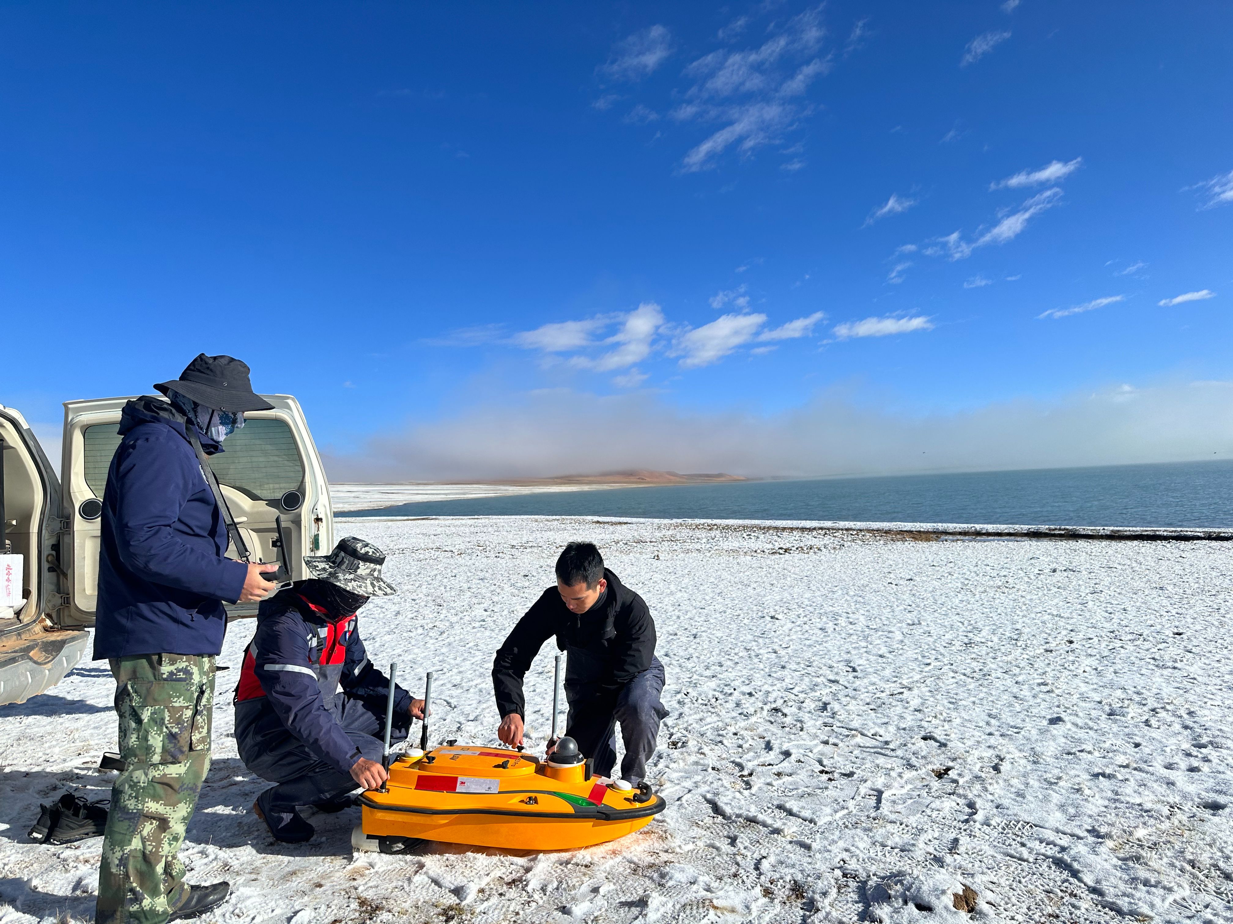 没有先例,便摸着石头过河;没有装备,便借来用、攒着造、以租代购;没有经验,便赴青藏高原所、南湖所等科研院所“拜师学艺”。为了将测量仪运抵车辆无法抵达的湖边,队员们肩扛手抬,在碎石滩上走出深深浅浅的脚印,为了赶在结冰前完成勘测,他们白天顶风冒雪作业,夜晚在帐篷里围着炉火整理数据,常常一熬就是半宿。