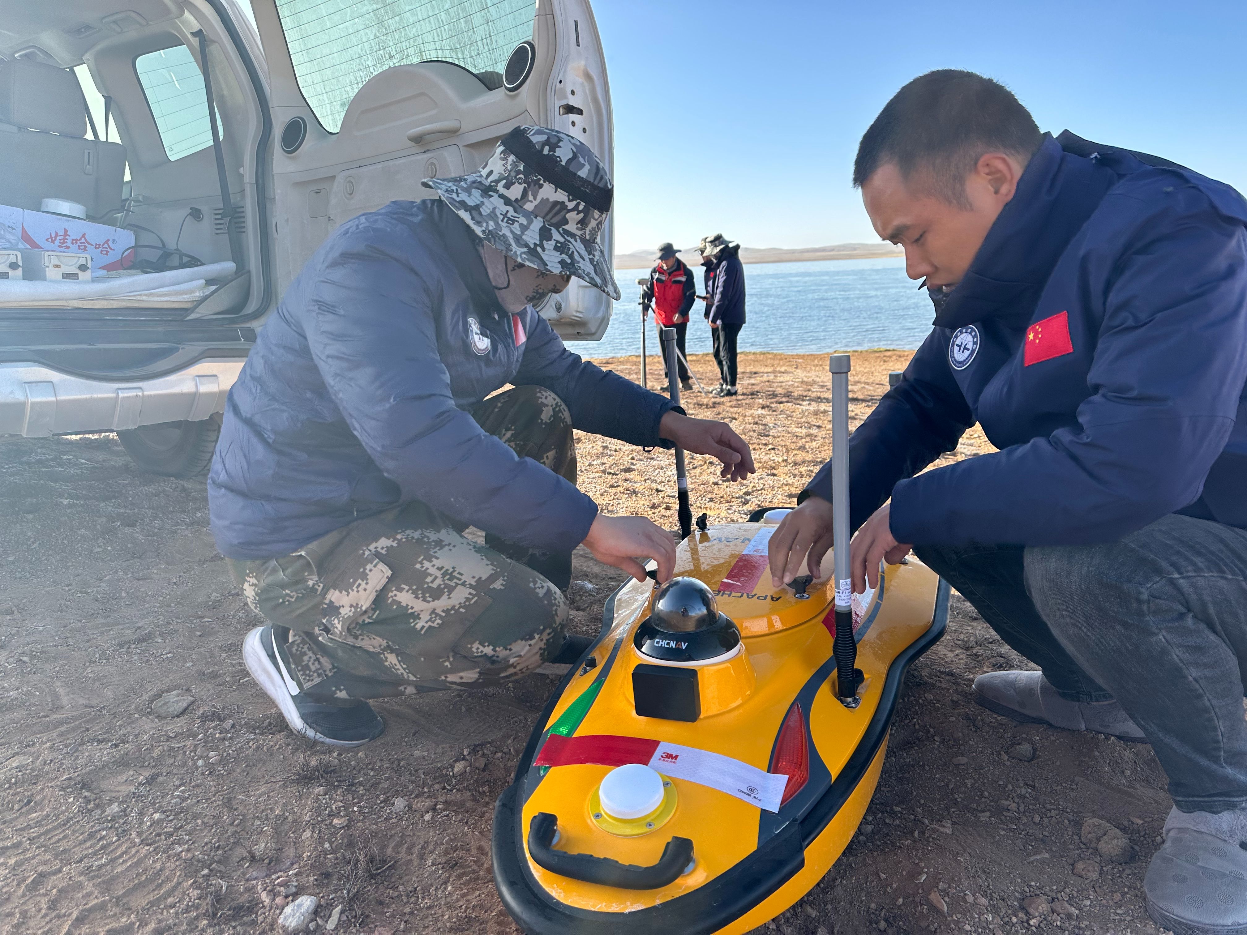 一场向“无人化”的转型攻坚战就此打响。团队引进无人船声呐、无人机激光雷达等尖端设备,在冰湖交织的巴木措展开首次试验。湖岸边,队员们轻点操控屏,无人船如“侦察兵”般穿梭湖面,无人机似“猎鹰”掠过湖岸,仅2小时便完成了以往人工8小时的工作量。当第一组精准数据传回时,现场爆发出的欢呼,穿透了高原的寂静。