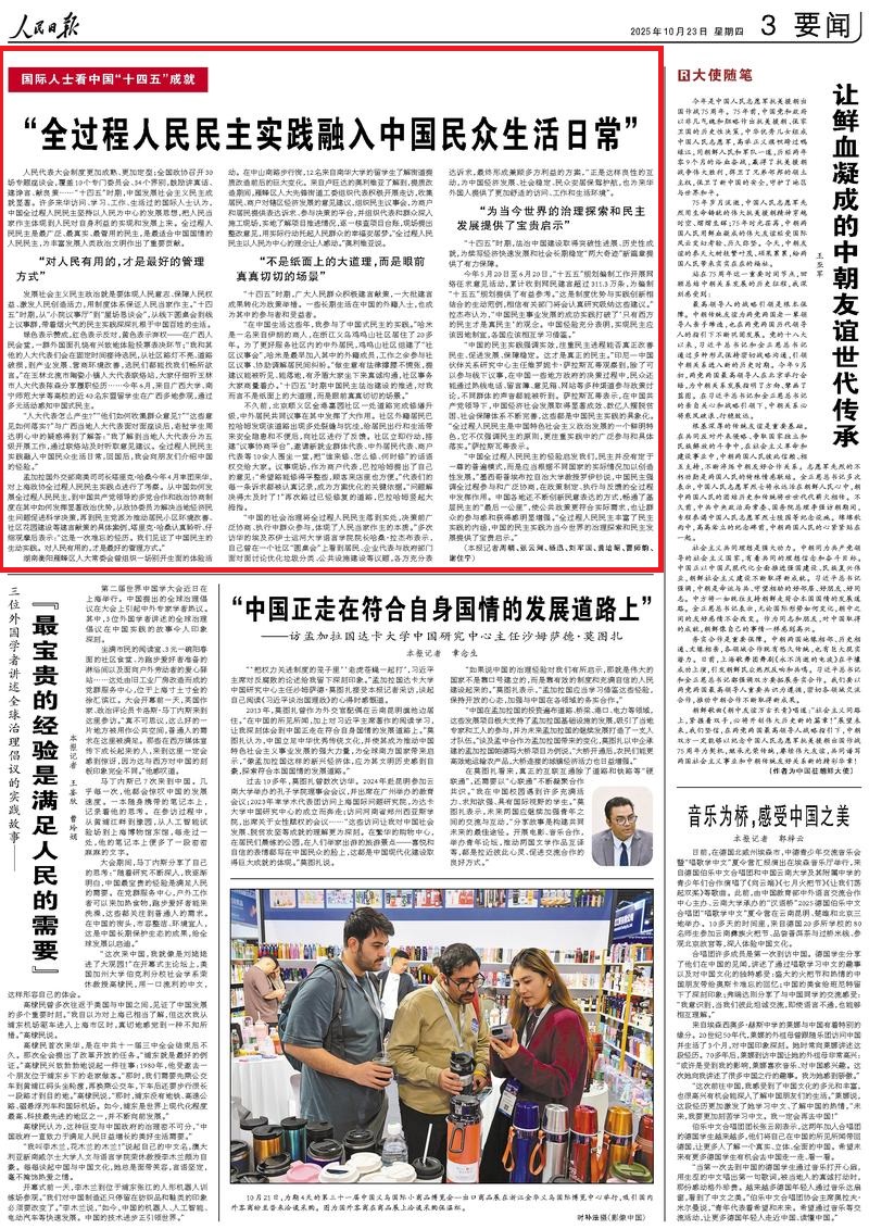 10月23日,《人民日报》第3版“国际人士看中国‘十四五’成就”栏目刊发《“全过程人民民主实践融入中国民众生活日常”》,其中报道了国际人士在广西通过多元活动感知中国式民主的事。涉及广西的内容,摘编如下:
