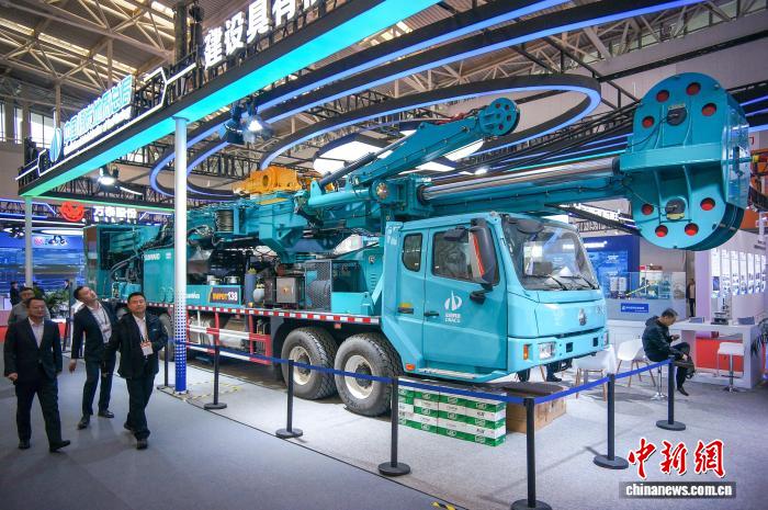 10月23日,天津,与会嘉宾参观柔性自适应双动力头车载钻机。当日,2025第二十七届中国国际矿业大会在天津梅江会展中心举行。大会以“互融互通,共建共享”为主题,设置了智能矿山(智能制造)、地质调查/矿业勘探设备、重型机械设备及配套零配件等多个展区,涵盖矿业全产业链条。中新社记者 佟郁 摄