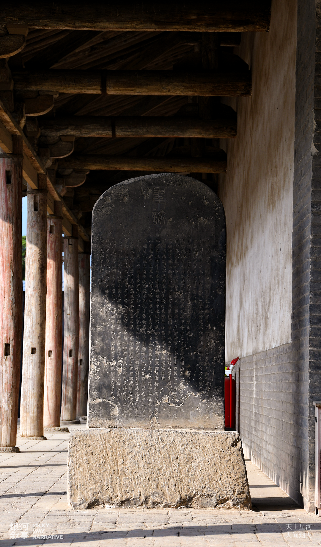 内外八根斜撑石柱角上有八只卷曲卧狮承托