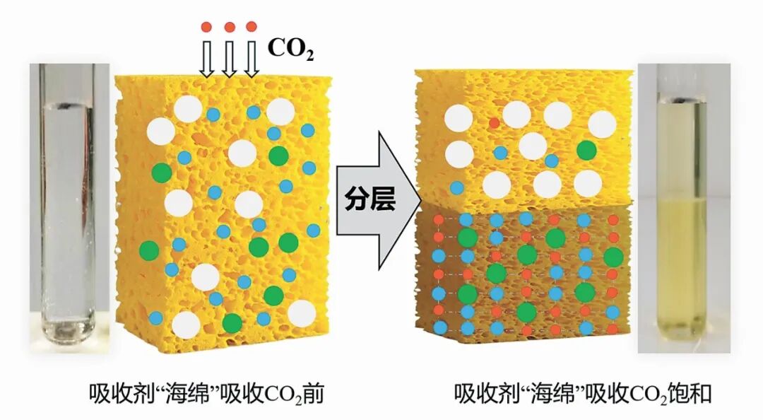 两相型二氧化碳吸收剂工作原理示意图。