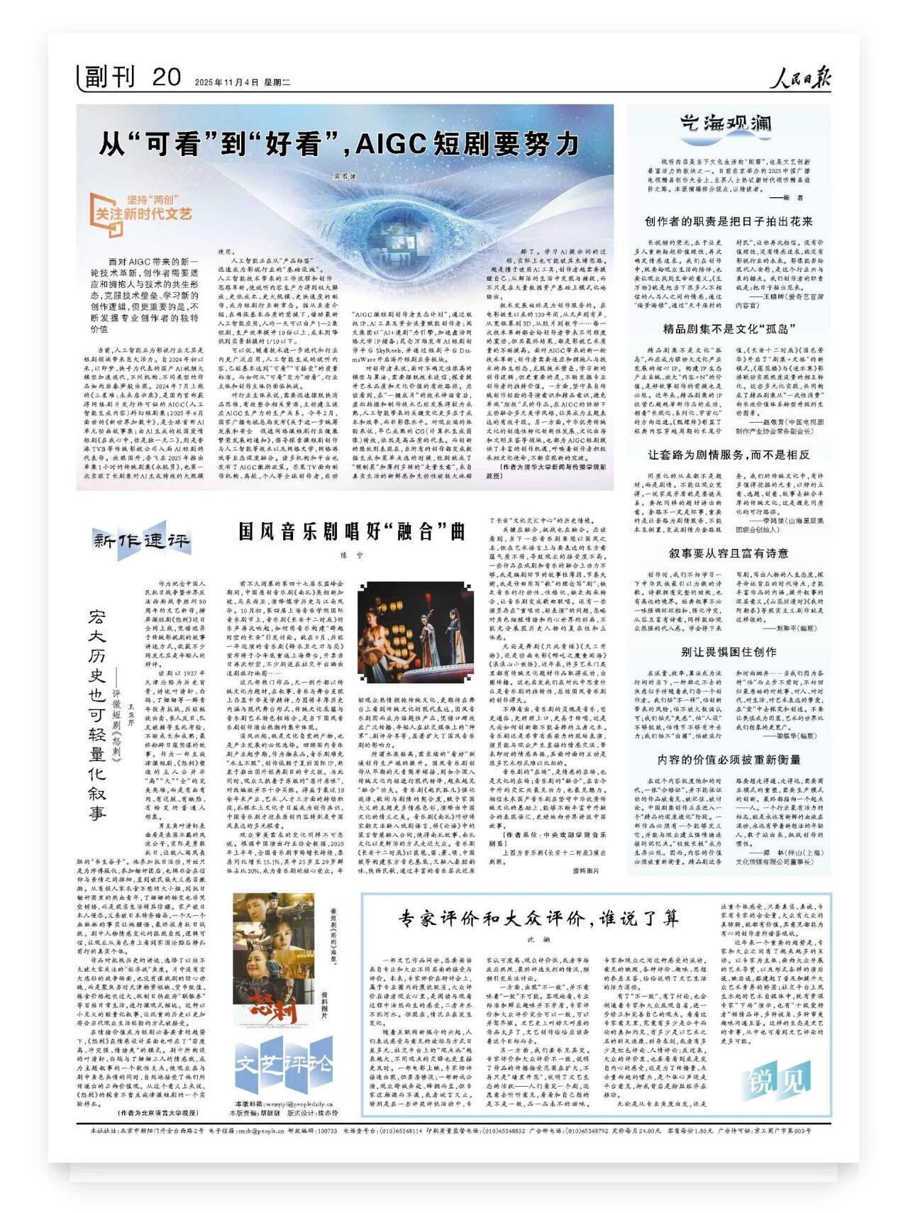 无论是舞剧《只此青绿》《天工开物》,还是动画电影《哪吒之魔童闹海》《浪浪山小妖怪》,近年来,许多艺术门类里都有传统文化题材作品取得成功,出圈传播。这也启发我们在对比中思索什么是音乐剧的独特性,总结国风音乐剧的创作得失。