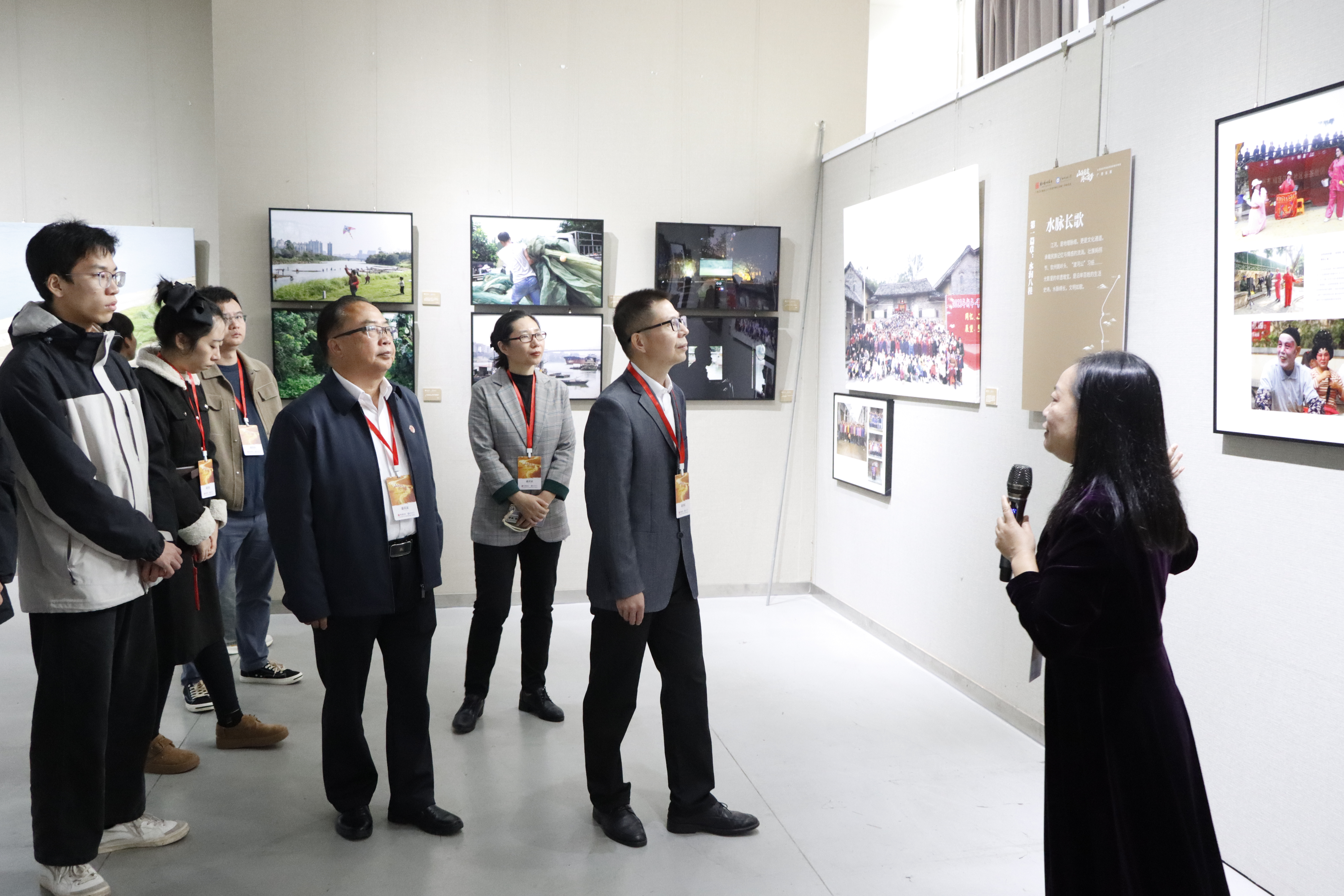 活动现场,师生们驻足于展板前,近距离欣赏影像中流动的江河与建设工地的晨雾,品味“依水而居”的生活之魅与建设者的真挚笑脸。讲解员以生动的语言串联起影像背后的故事,为观众铺开一幅历史与现实交织的壮美画卷。