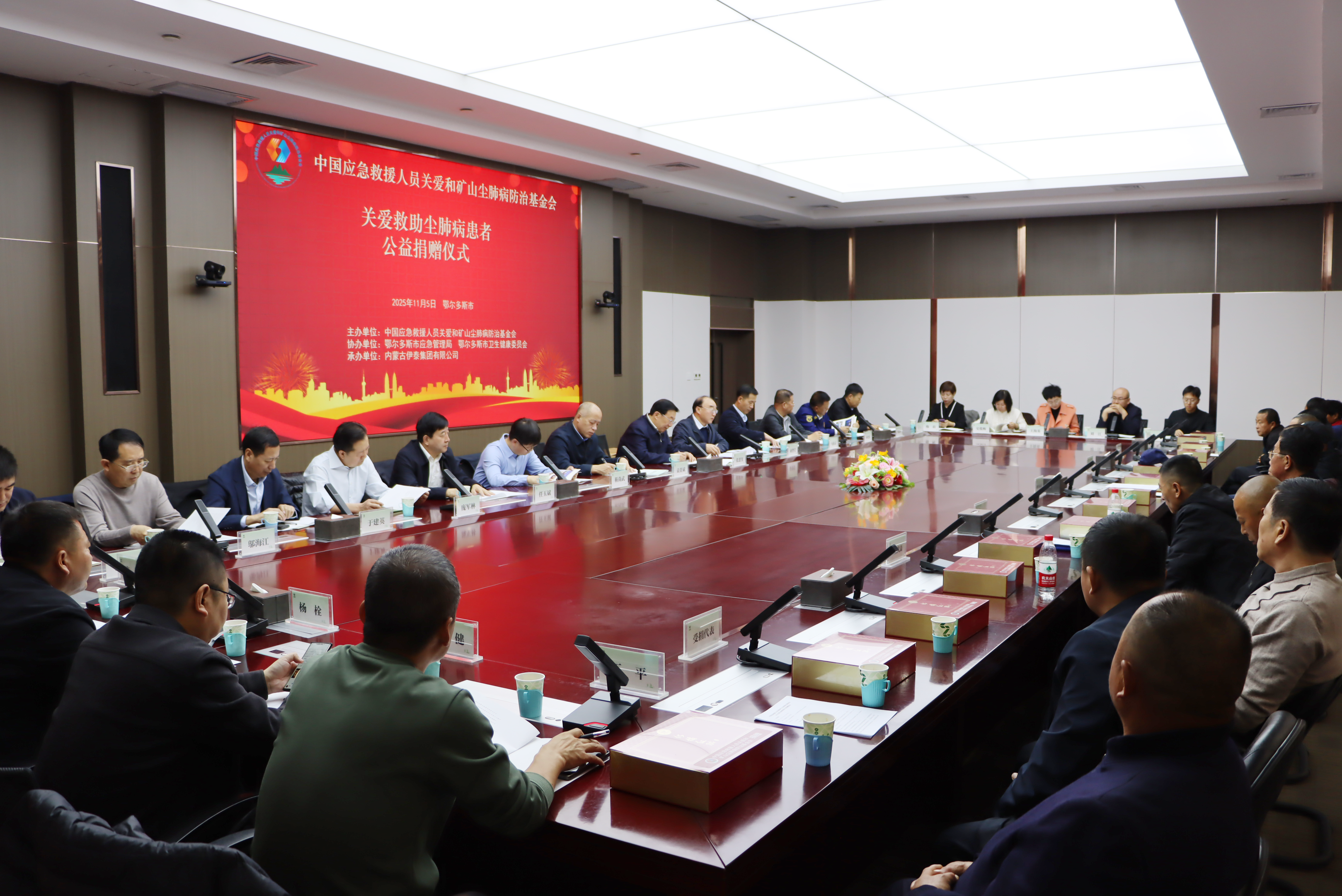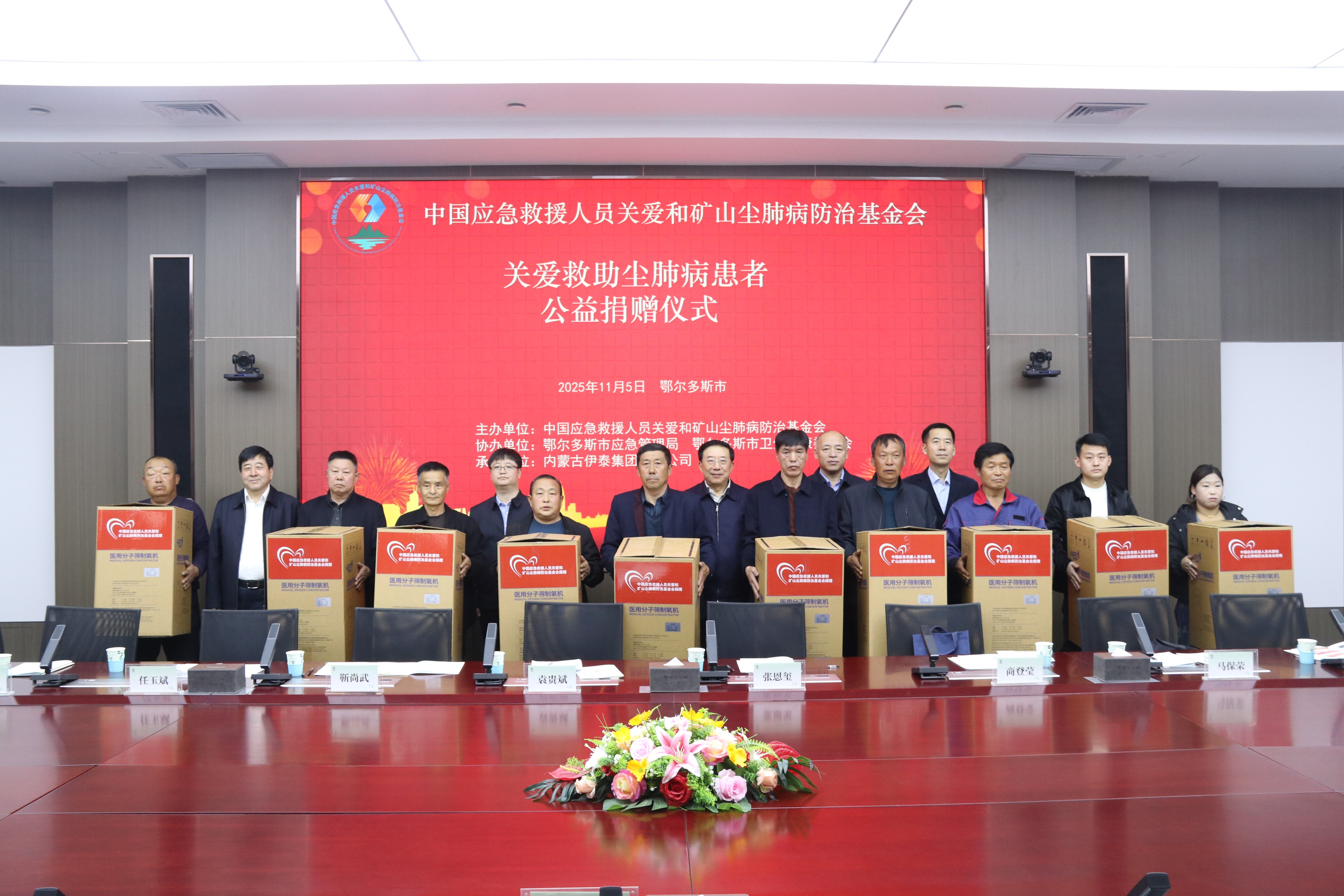 11月5日,中国应急救援人员关爱和矿山尘肺病防治基金会关心关爱尘肺病患者公益捐赠仪式在鄂尔多斯市举办。基金会为100名尘肺病患者捐赠100台制氧机和200盒尘肺病治疗药品,将健康希望与人文关怀送到他们身边。