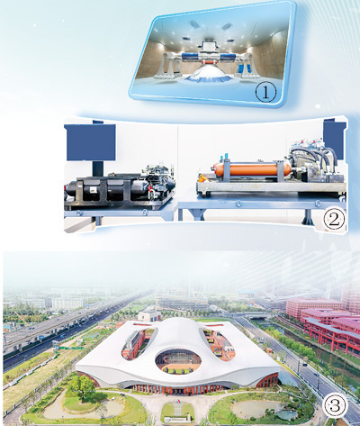 图①:CHIEF1300模型制备机。图②:超重力单向振动台。图③:超重力离心模拟与实验装置外观。图片均为浙江大学提供