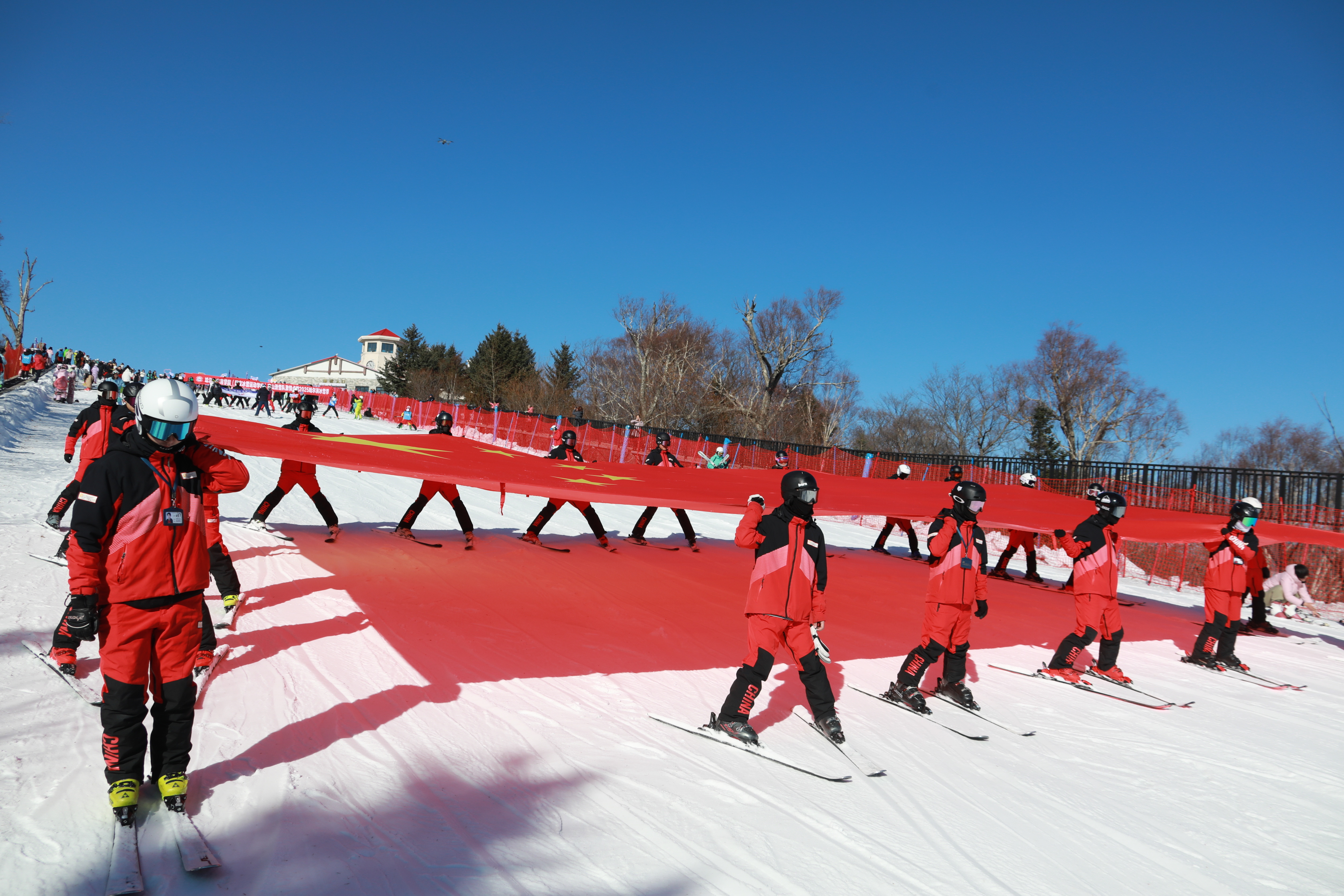 活动现场,冰雪季宣传片在巨型屏幕上循环播放,雪道旁的彩旗随风猎猎作响。活力四射的体育舞蹈表演率先登场,瞬间点燃全场热情。身着五颜六色滑雪服的游客穿梭其间,欢声笑语与缆车运行声响交织。启动仪式后,运动员方阵、国旗方阵、哈尔滨体育学院(国家冰雪运动学院)方阵依次从山顶滑下,专业滑手在雪道上画出优美弧线,雪板激起雪雾飞溅。