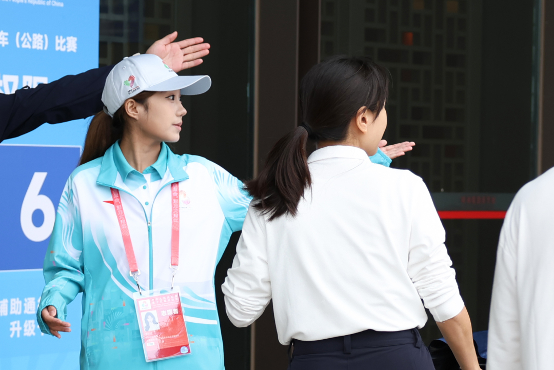 “您的证件请出示一下,休息区请往这边走。”程淑童一边查验证件,一边为参赛选手指引方向。她是今天首批上岗的自行车赛事志愿者之一,这些志愿者主要来自北京理工大学珠海校区和北京师范大学珠海校区。