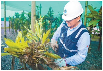 查格亚水电站当地员工在苗圃中精心护理兰花。 |