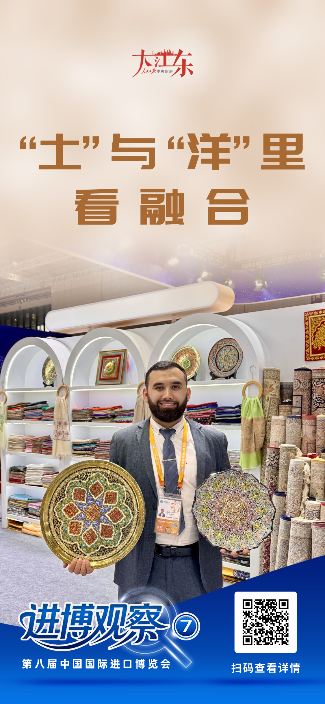 曾是乌兹别克斯坦优秀皮划艇运动员的李辰阳,留学中国后转型当起跨境电商主播。受一位阿富汗商人在进博会展示家乡特产大获成功的故事启发,2024年第七届进博会,他开启“进博首秀”,成绩超乎预期。随后,依托进博会“6+365”常年展示交易平台绿地全球商品贸易港,李辰阳创办公司,成功实现手绣围巾、手工地毯、陶瓷制品等产品在中国市场的常态化销售,其中,进博会同款商品最受欢迎。“今年参加进博会,希望能抓住‘回头客’带来的新机遇。”李辰阳说。