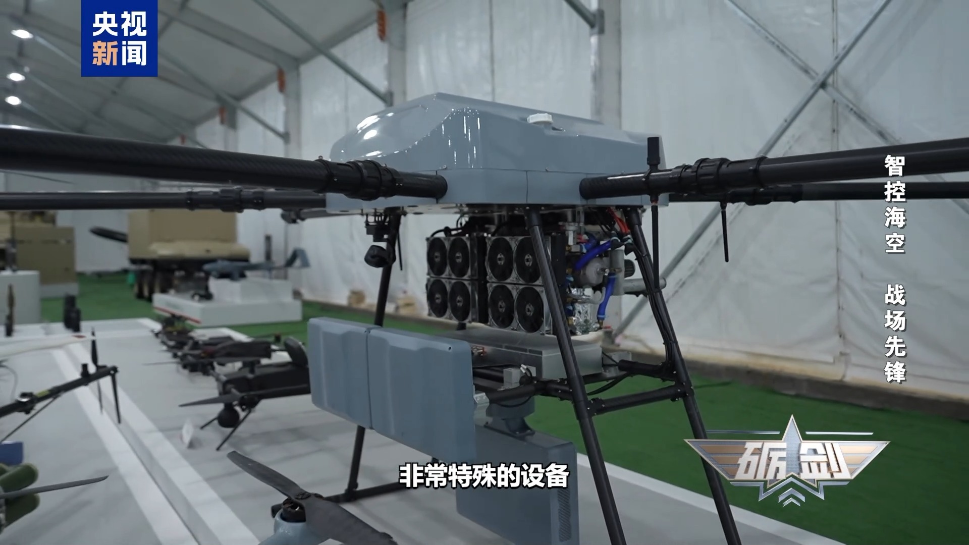 这架无人机叫“飞蛛”,它主要是针对空中几公里以内的低慢小目标进行软杀伤。它的杀伤方式是无线电干扰,这就依赖于它身上挂载的特殊设备,例如光电雷达。也许未来它将成为空中无人大战的主角之一。