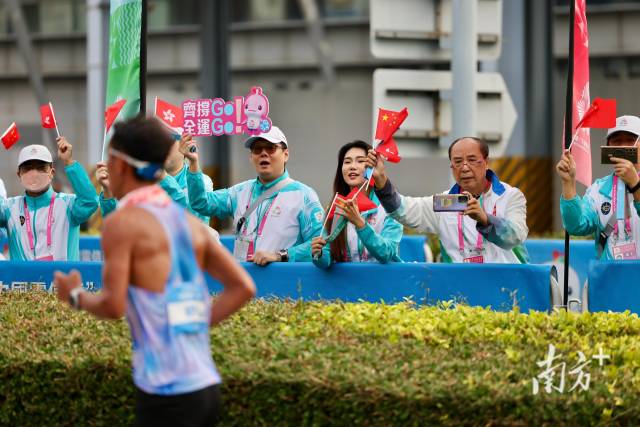 11月15日,凌晨4时30分,天还未亮,香港赛区的工作人员与志愿者已各就各位。8时13分,第一批男子选手从香港元朗区折返回深圳湾口岸,热烈的加油声即刻响起:“加油,运动员,加油,运动员……”声音一浪接着一浪,回荡在香港的上空。
