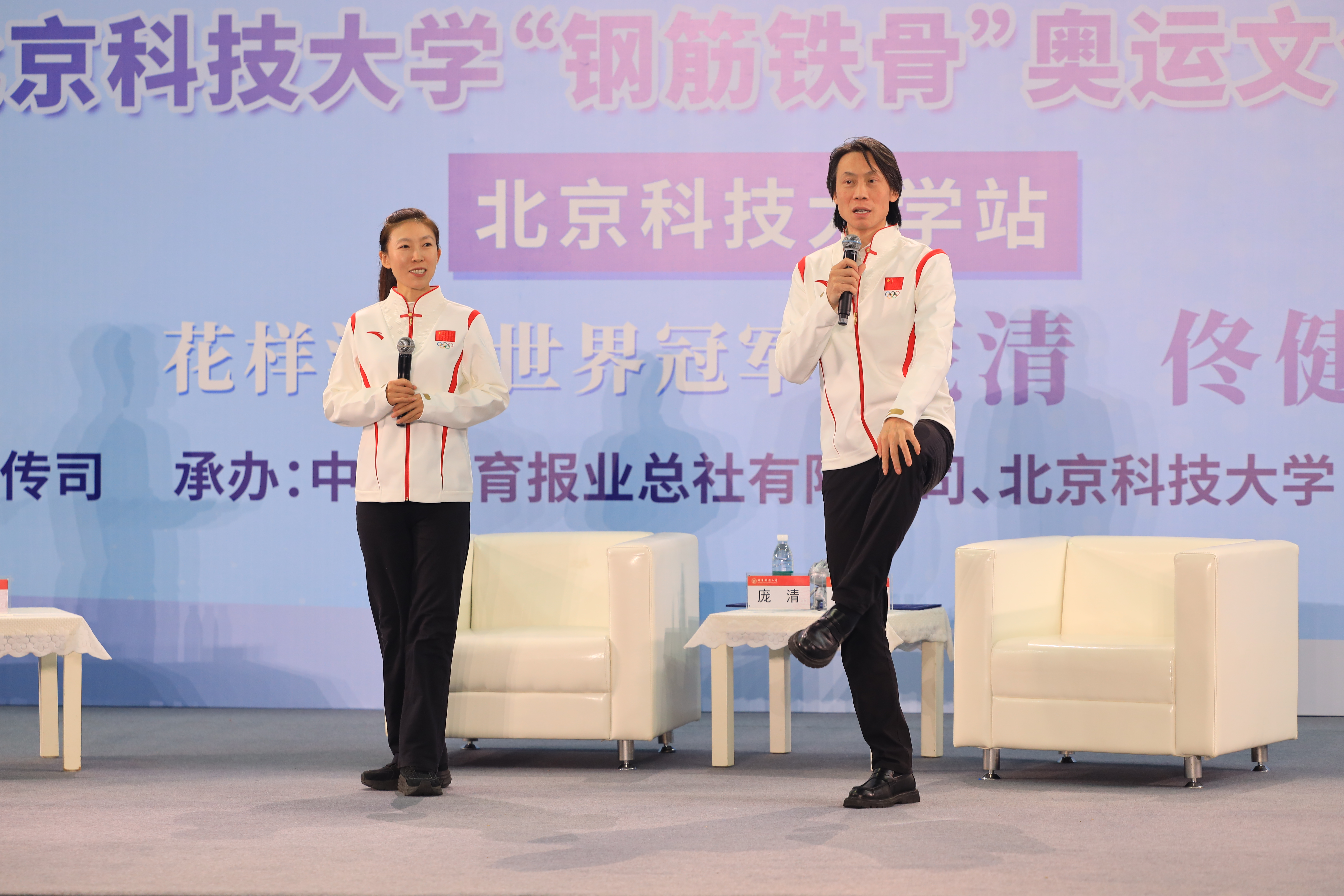 11月16日,“中华体育精神大讲堂”校园宣讲活动、“冠军体育课”运动员进校园活动走进北京科技大学。花样滑冰世界冠军庞清/佟健为北科学子带来一堂兼具力量与温度的冰上“人生课”。深度访谈、互动问答等多种形式,让“中华体育精神”变得可感可知,在大学校园里播下“团结”与“拼搏”的种子。