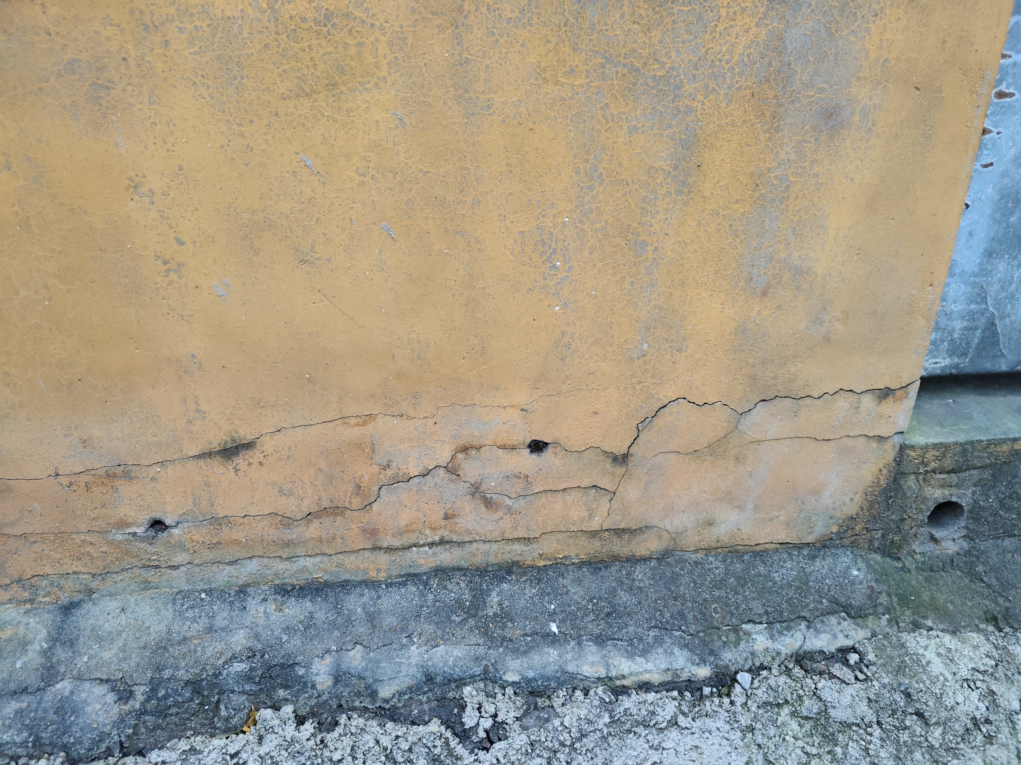 金先生带记者绕到屋后,看两面墙连接处约有三指宽的裂缝,“我怀疑这是地基沉降造成的。”