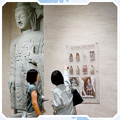 “2014年,我们着手进行拼接,前期手工拼接,后来开始用三维激光扫描仪进行高精度扫描,并利用基于人工智能的造像聚类研究,让100多块造像残块在虚拟空间实现重组。”云冈研究院数字化保护中心文博馆员李丽红介绍。
