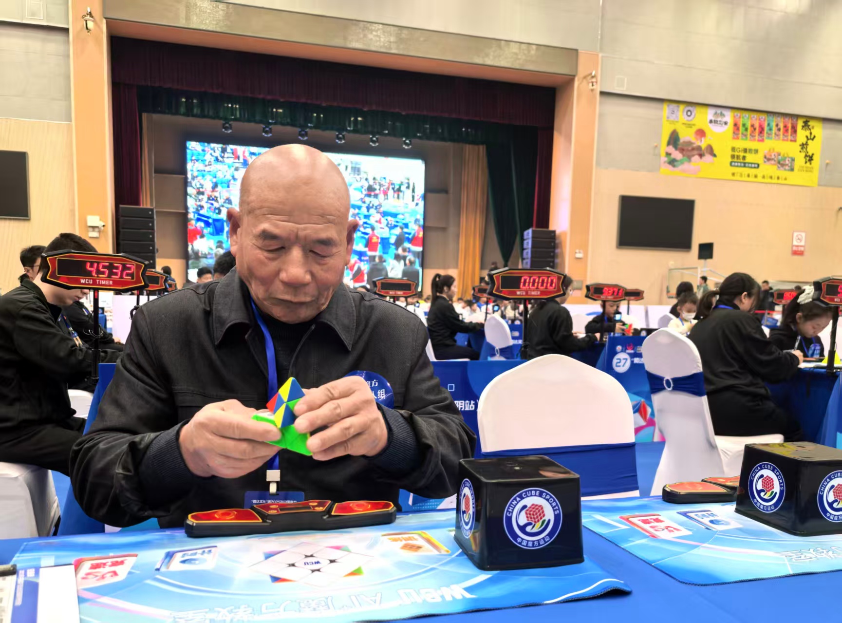本次平阴站赛事设置了多个年龄组别与项目类别,从不到4岁的幼儿选手到77岁的老年爱好者,不同年龄段的选手在赛场上展现着魔方运动的多元魅力。来自山东济南的12岁选手王梓轩参加三阶速拧项目,他表示:“通过魔方认识了很多志同道合的朋友,这次要向全国高手学习。”