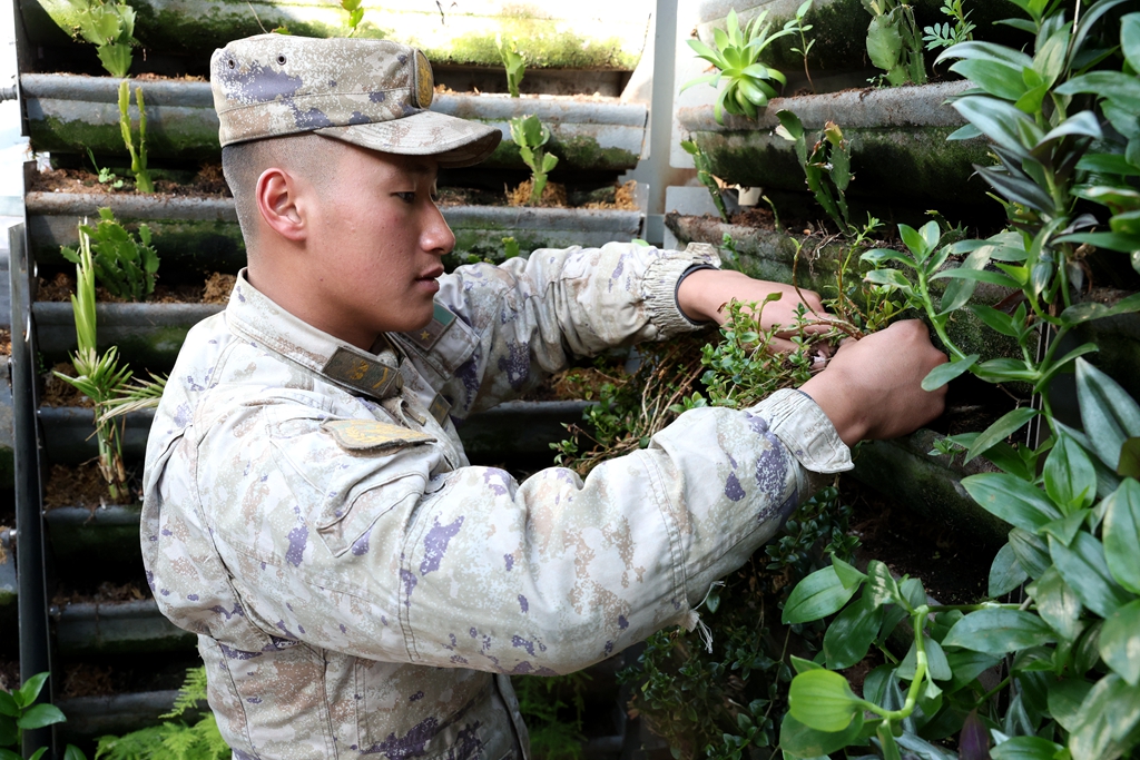 官兵在整理花房。琼达卓嘎 陈武斌 摄