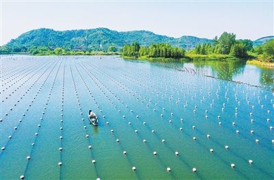 如今,走进德清,首先映入眼帘的是水面上那一排排白色球状浮标,它们彼此串联,仿佛一串串“珍珠项链”——这下面,正孕育着真正的珍珠。