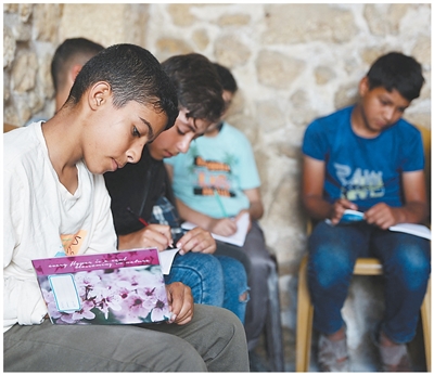 11月2日,加沙城重返校园的学生在上课。