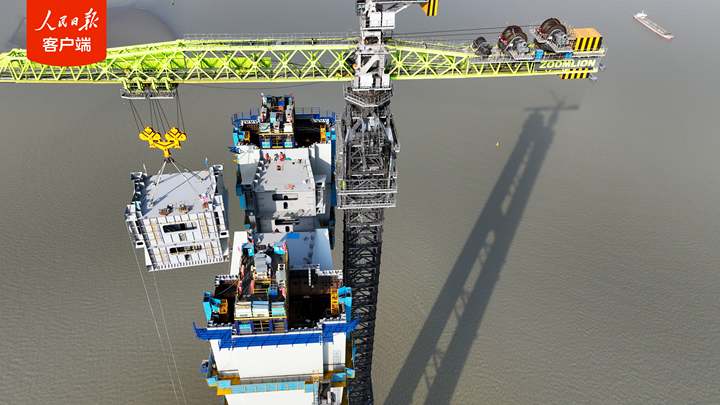 “从设计图纸到高塔矗立江心,从主塔首节段吊装到上横梁合龙,历时630多天,每一次吊装的精心组织、每一个节段的精准对接,均成为中国桥梁技术向世界顶尖水平迈进的有力见证。”中交二航局张靖皋长江大桥项目技术负责人黄修平表示。