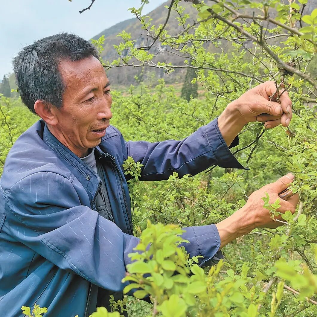 短短一年,越来越多的刺梨树苗被种到山坡上、田野里,连一些石砾地也泛起绿意,野钟村变了模样。在技术员手把手指导下,徐天勇将自家10多亩地全改种上刺梨,从修枝、施肥、除草到病虫害防治等,他逐步摸清了管护要点,凭着一股认真劲儿,学到的知识越来越多,自家种的刺梨长势格外喜人。3年生长期一晃而过,当初的小树苗长成了郁郁葱葱的林子,随着刺梨陆续挂果,乡亲们迎来丰收时刻。