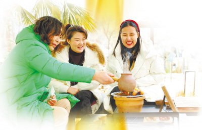 河南栾川县,游客在畔山民宿围炉煮茶。 |