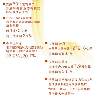 首发经济不断上新,北京、上海、四川成都等地加强政策支持力度,吸引众多首店、首发品牌入驻,成为挖掘内需潜力的重要抓手。冰雪经济持续升温,逐渐从“一季热”变为“四季火”,冰雪产业规模2025年预计突破万亿元。银发经济空间广阔,养老新业态、新模式不断涌现,银发消费市场规模稳步增长。平台经济规范有序,在以旧换新政策的支持下,平台企业强化技术创新、优化服务体验,助推消费提质升级。