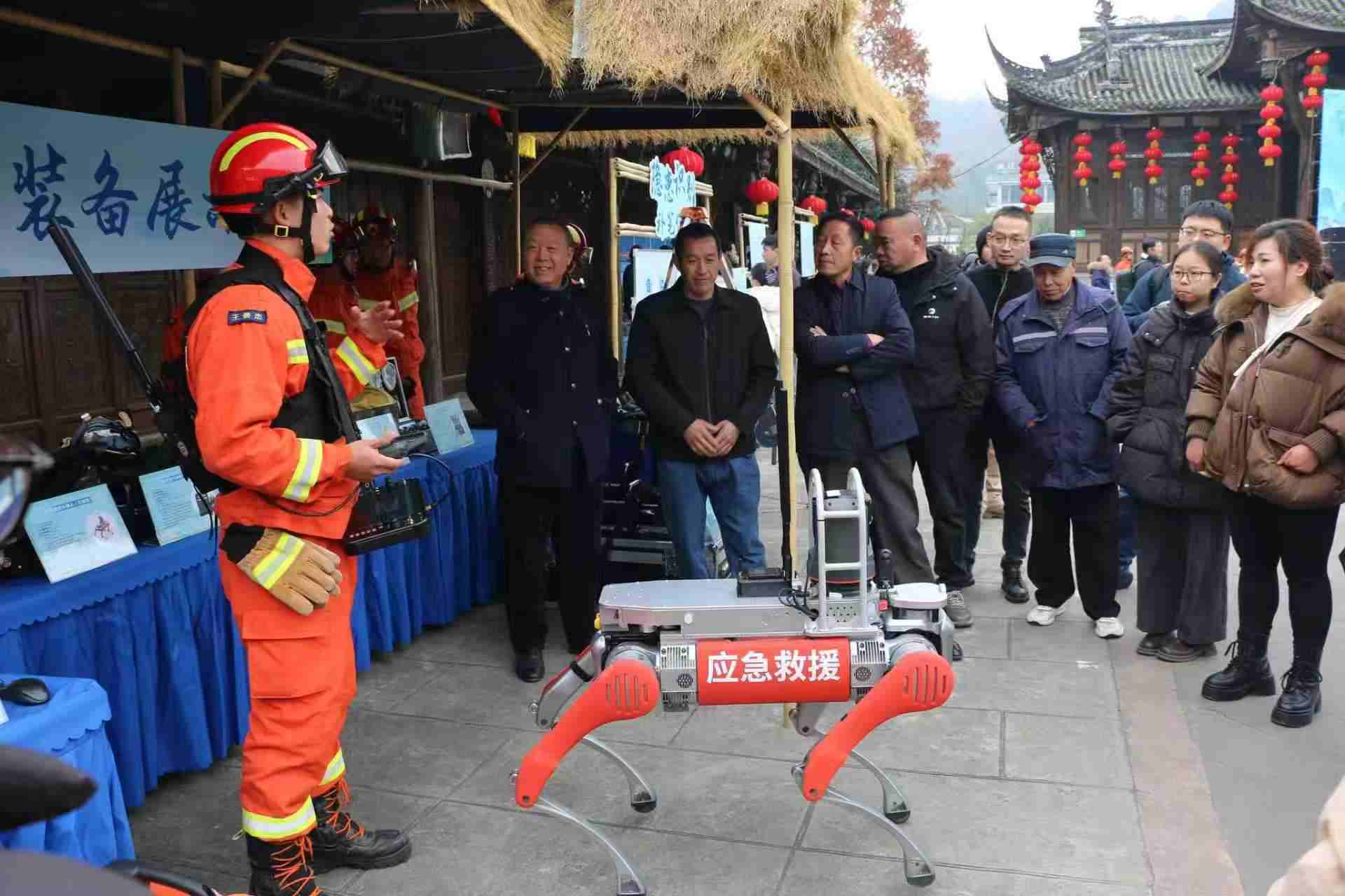 救援机器狗亮相,群众驻足围观。成都市应急局供图