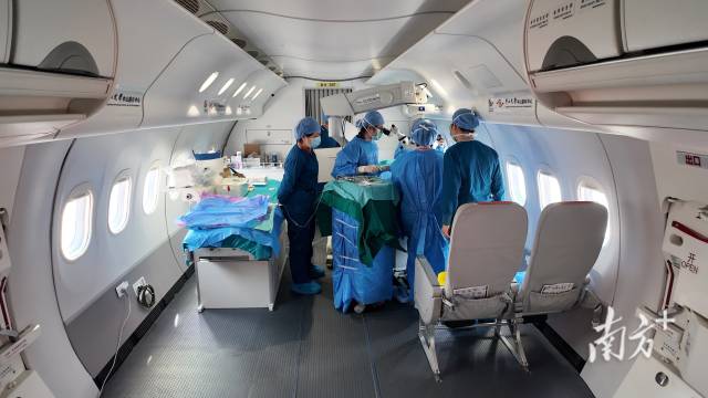 这是中国首例在国产飞机上成功实施的眼科手术。