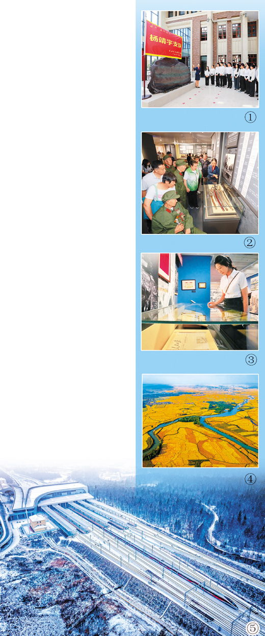 图⑤:11月27日,一列“复兴号”动车组驶出长白山高铁站。