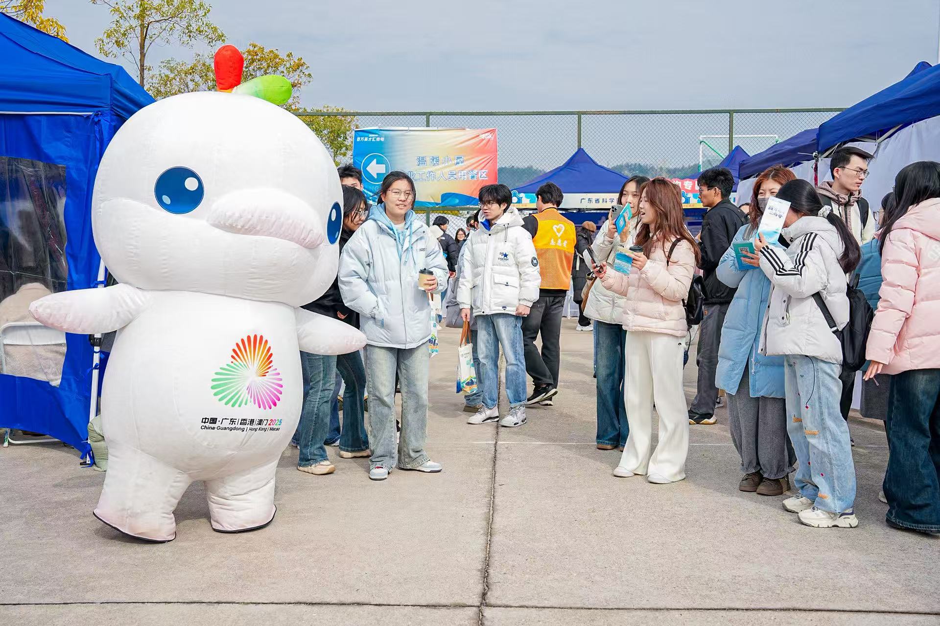 活动现场还精心规划了城市展区、科技展品区等多元功能区,并融入了趣味问答与打卡集章等互动环节,为高校学子提供便捷高效、丰富有趣的求职体验。在城市展区,珠海、阳江、横琴及港澳地区集中展示了各自的人才发展环境与城市魅力,帮助学子沉浸式感受广东的发展机遇。科技展品区则展出了极致轻量型“AI+AR”眼镜等前沿科技产品,让求职者“边看、边玩、边投递”,在互动中感受广东的产业活力与创新动能。现场还提供就业指导、简历诊断等一站式服务,招聘单位更通过线上互动,实时回应岗位详情与薪酬待遇等疑问。“暖心人才驿站”为学子们准备了热咖啡、姜茶、暖宝宝等御寒物资,传递广东招才引智的温度。