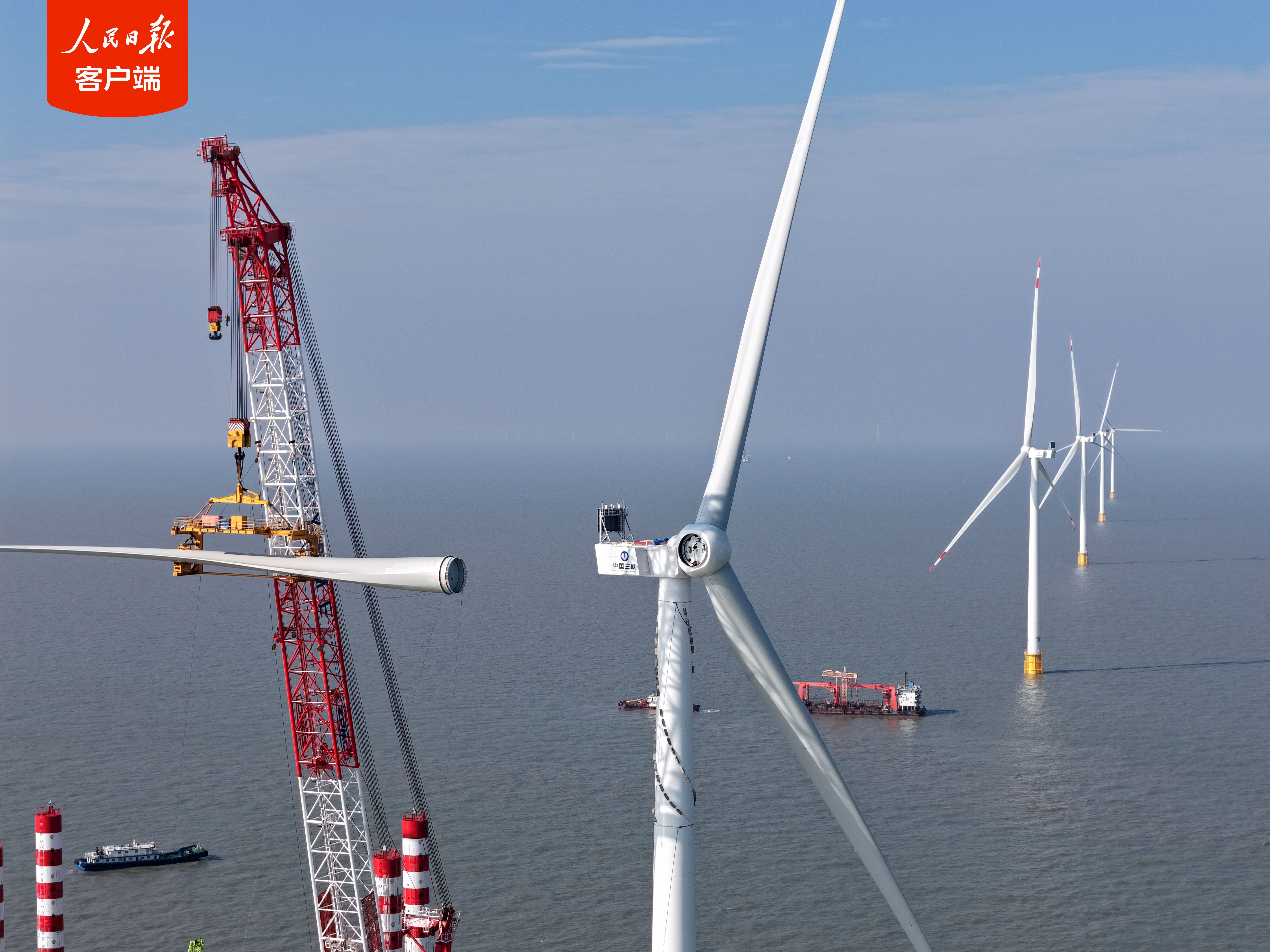 12月15日,我国离岸距离最远海上风电项目——三峡江苏大丰800兆瓦海上风电项目实现全容量并网,标志着我国海上风电向深远海迈进取得了又一重大突破。(人民日报记者 雷声 摄)