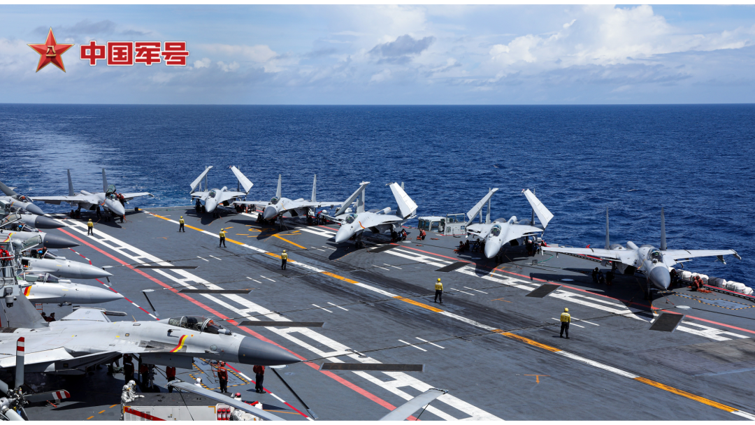 2024年10月,辽宁舰、山东舰编队首次开展双航母编队演练。歼-15战机组成楔形编队飞过双航母编队上空。