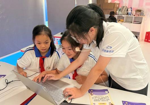 在金蝶软件“火星家园计划”中,青少年们化身“火星开拓者”,模拟经营“火星冰淇淋店”,学习数字化管理;在云天励飞“云天号”星际飞船上,青少年组成“少年特工队”闯关收集AI“算法、算力、数据”三大记忆碎片;在越疆科技“机器人博物馆”中,青少年们体验“小侦探”实操智能小车探索技术原理,亲手触摸“中国智造”的脉搏;在点猫科技“魔法学院”中,学生化身“见习魔法师”用代码施展魔法;在北科瑞声“声音事务所”中,青少年们化身“声音顾问”探索应用“潜岳”系统,通过声音和AI的结合,进行声音降噪、声纹比对、情绪捕捉等探索。