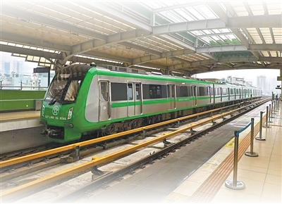 由中铁六局承建的河内轻轨2号线是越南开通的首条城市轻轨。图为轻轨列车进站。