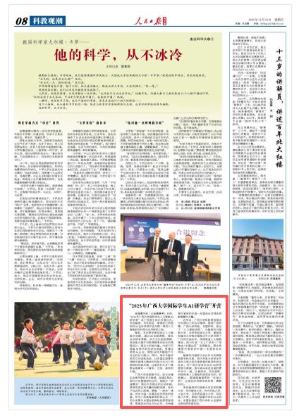 近年来,广西大学积极贯彻落实中央周边工作会议精神,围绕广西所需、广西大学所能、东盟所盼,成立了“人工智能学院”,与越南河内国家大学、马来西亚国立大学、泰国朱拉隆功大学等东盟高水平大学开展了广泛的交流合作,持续推进人工智能建设,助力打造“北上广研发+广西集成+东盟应用”发展路径,服务构建更为紧密的中国—东盟命运共同体。