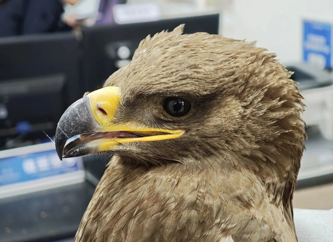 当晚,在尝试放飞失败后,梅胜福拨通了成都东部新区三岔派出所的报警电话。民警迅速出警,将这位特殊的“伤员”接回所内照料。次日一早,草原雕被顺利转运至成都动物园。经检查,这只草原雕翅膀存在伤病,需留园治疗康复,待痊愈后再评估放归。