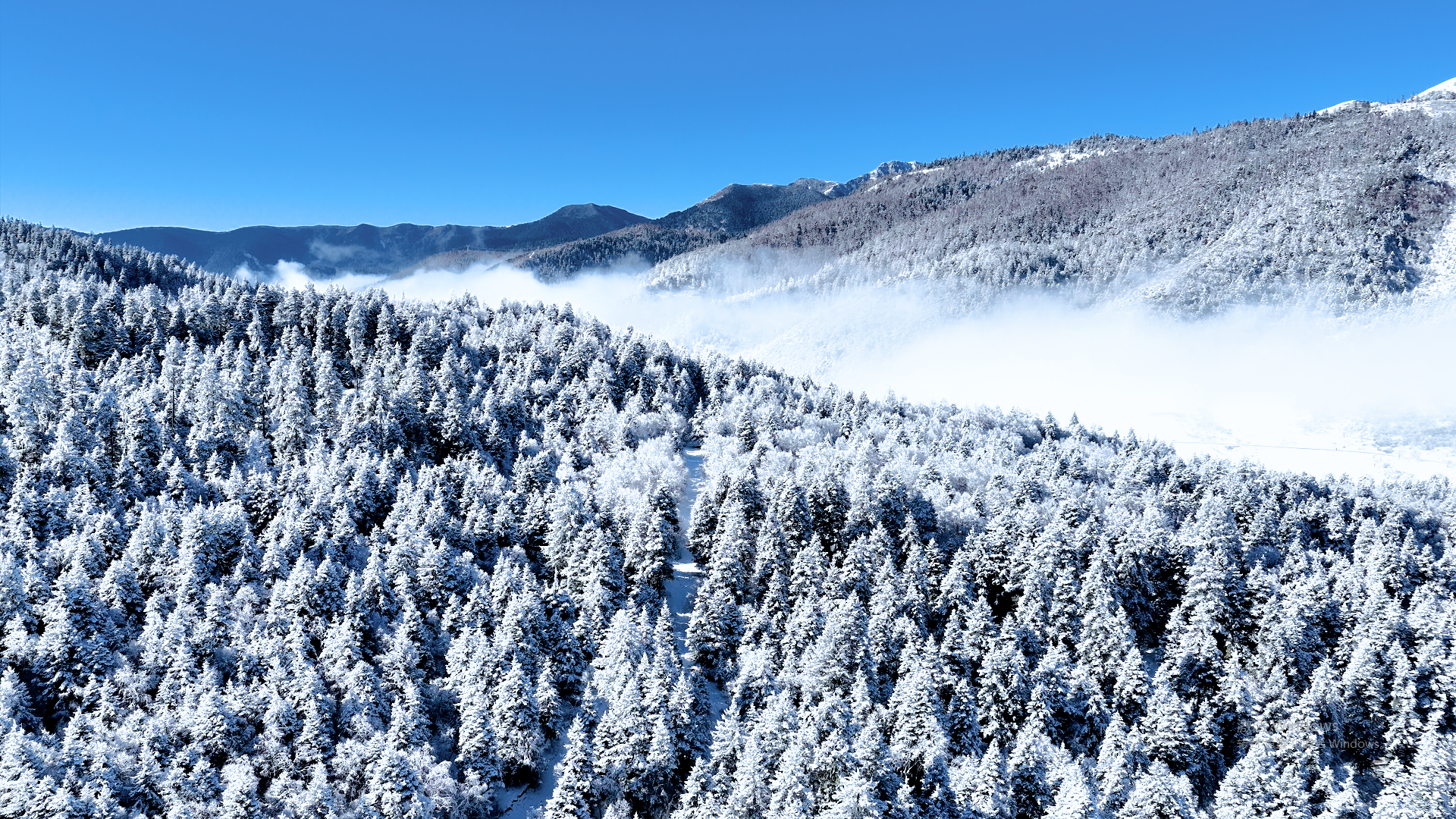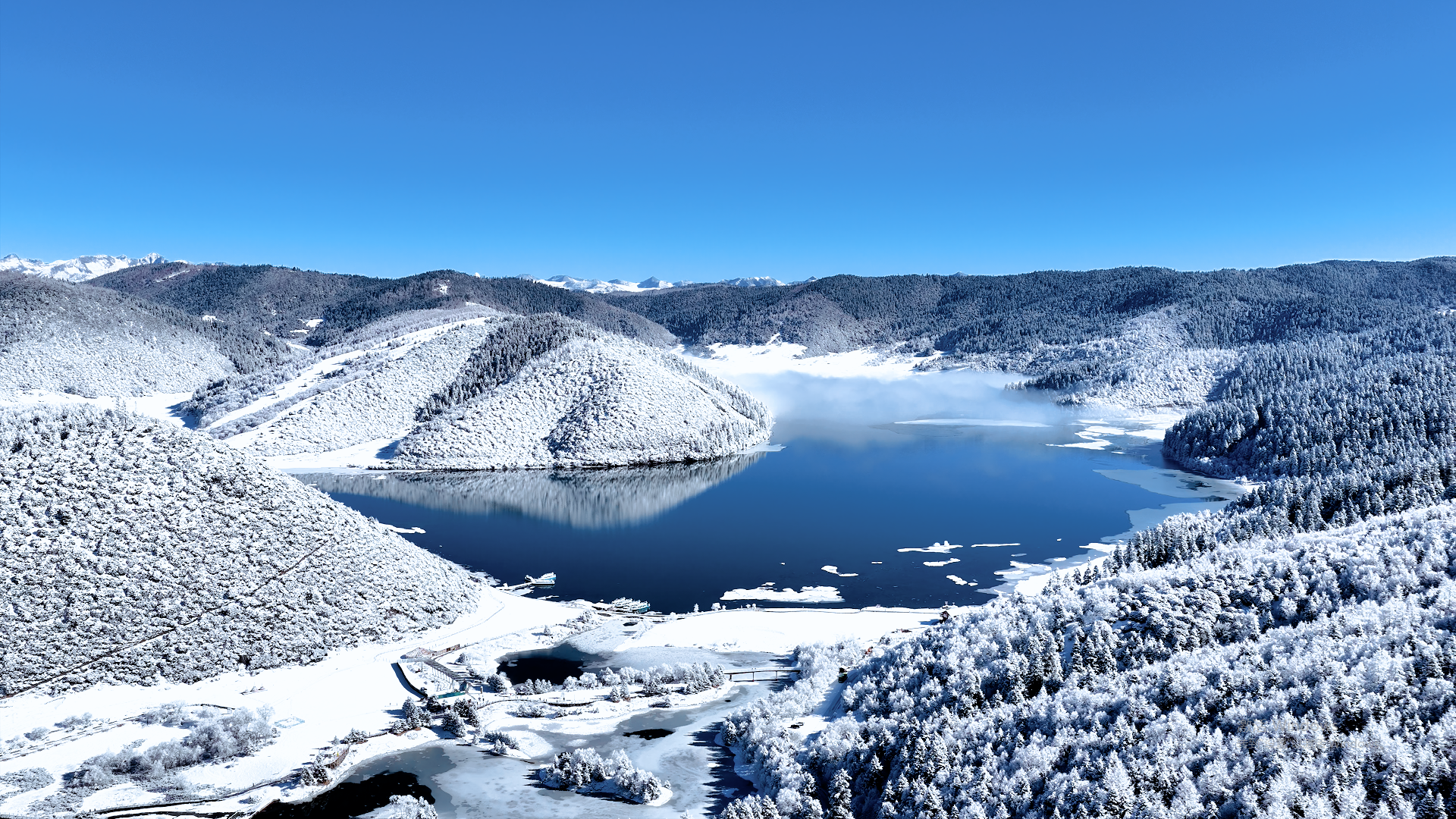 远处的神山披着皑皑银装,半隐于缥缈的云雾之间,时隐时现的轮廓,添了几分难以言说的神秘与悠远。