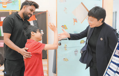 中建中东公司连续13年向迪拜拉希德残障儿童中心捐赠,助力改善残障儿童教育条件。图为今年6月,中建中东公司相关负责人(右一)前往拉希德残障儿童中心交流。 |