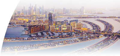 迪拜朱美拉棕榈岛是世界上最大的填海造地项目之一,外形为棕榈树形状,由“主干”和17条“枝干”组成,外加一个圆环挡水岛。中建中东公司参与建设了分布在棕榈岛11条“枝干”上的818套别墅。图为朱美拉棕榈岛夜景。 |
