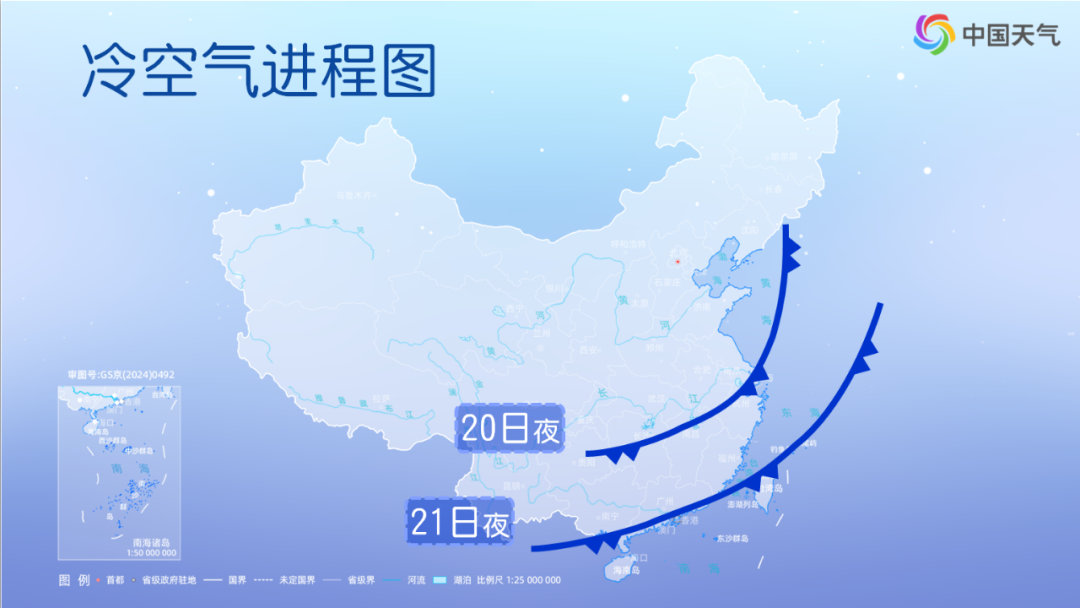 紧接着,22日,还会有新一轮冷空气上线,自西北地区开始影响我国;23日以后中东部地区又将自北向南出现显著降温。